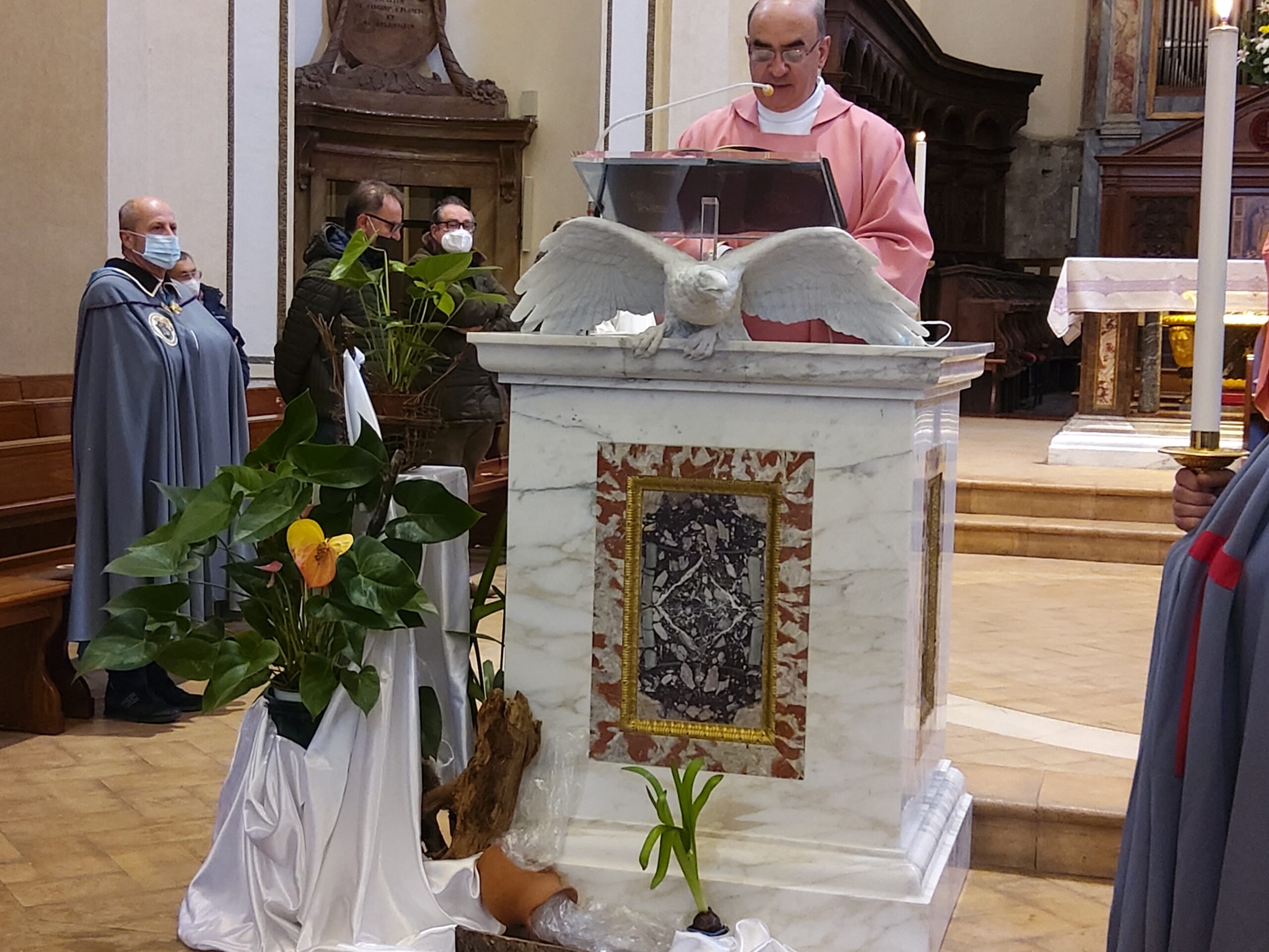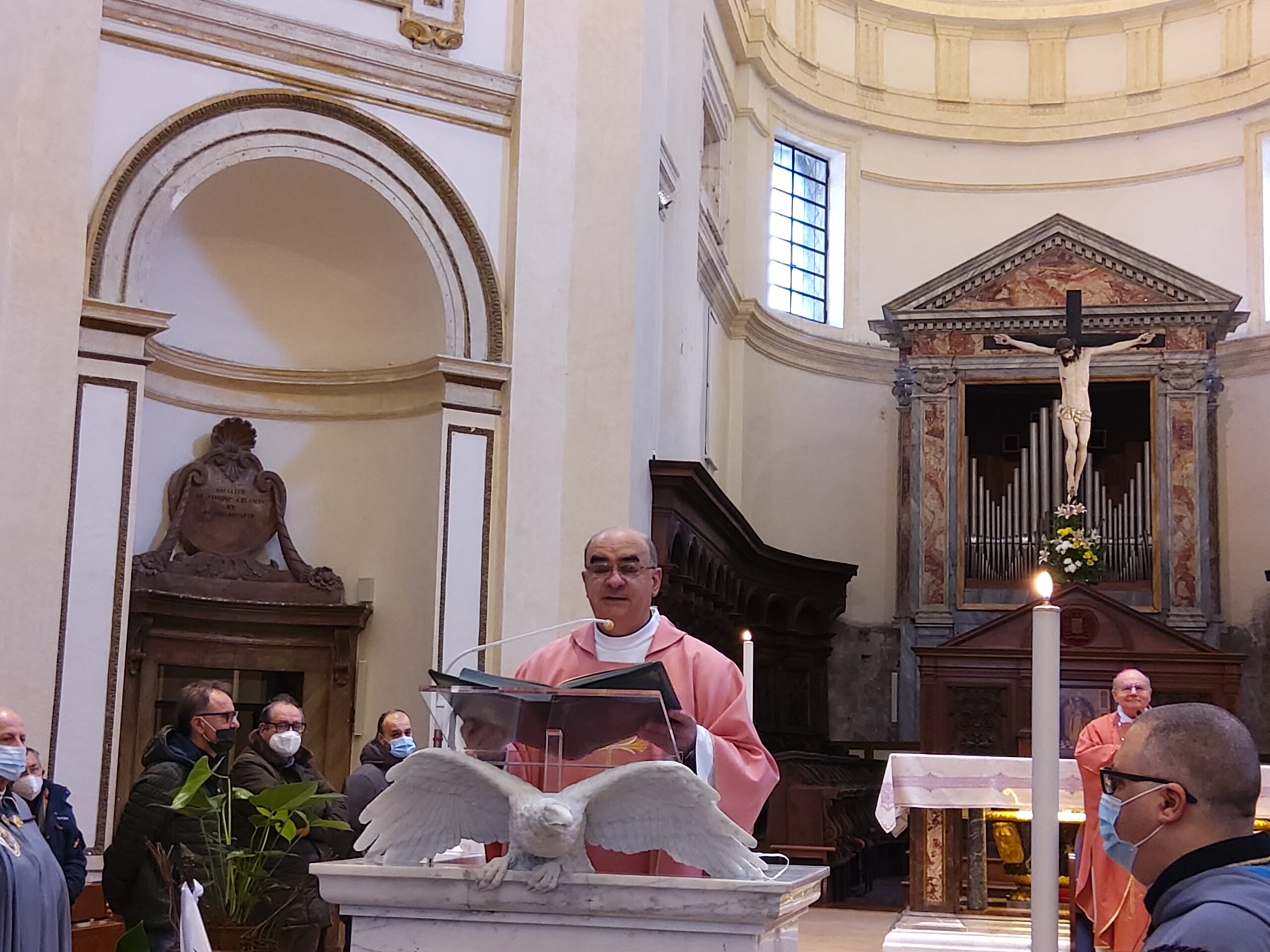 Il presule all'omelia ha ricordato che la liturgia di oggi ci ricorda la vittoria di Dio nella nostra vita e il trionfo del suo Amore in qualsiasi condizione e situazione di sofferenza. Accade "nell'oggi liturgico" al popolo di Israele che si trova esiliato e desolato, si chiede il perché e scopre la motivazione profonda nella sua infedeltà. Dio però trova sempre rimedio e tutto rinasce con Ciro l'imperatore cristiano. Così con il simbolo del serpente innalzato nel deserto da Mosè, Dio rimedia all'infedeltà del suo popolo, perché chi lo avesse guardato sarebbe stato guarito, a significare che chi guarda a Lui, al Dio alla vita, che solo Lui può dare, è salvo. Il nostro è un Dio che vive nella nostra sofferenza e cammina con noi, anche nella pandemia che ci sta provando da un anno ormai, ma intorno all'altare come oggi facciamo riserva di speranza per essere uomini e donne di fede, di gioia e di una speranza che fiorisce dalla Parola".